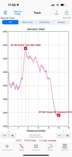 Day 03 summary: hike from Garfield Ridge Camp over South Twin Mountain to Zealand hut and beyond.
