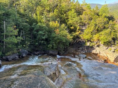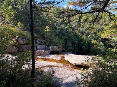Why the light is always shimmering?  Exiting onto Thoreau Falls a bit off AT.  There are sun, water, and a few more miles ahead – good progress.
