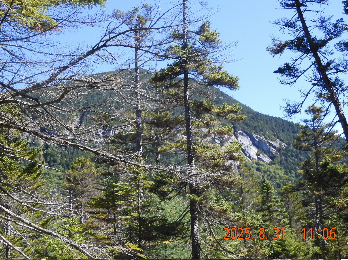 11:06 – 11:54 I see a beautiful view of Mount Willey that is about 4000′ high. It looks like it is hanging directly over the pond, but you will not see that while at the shelter.