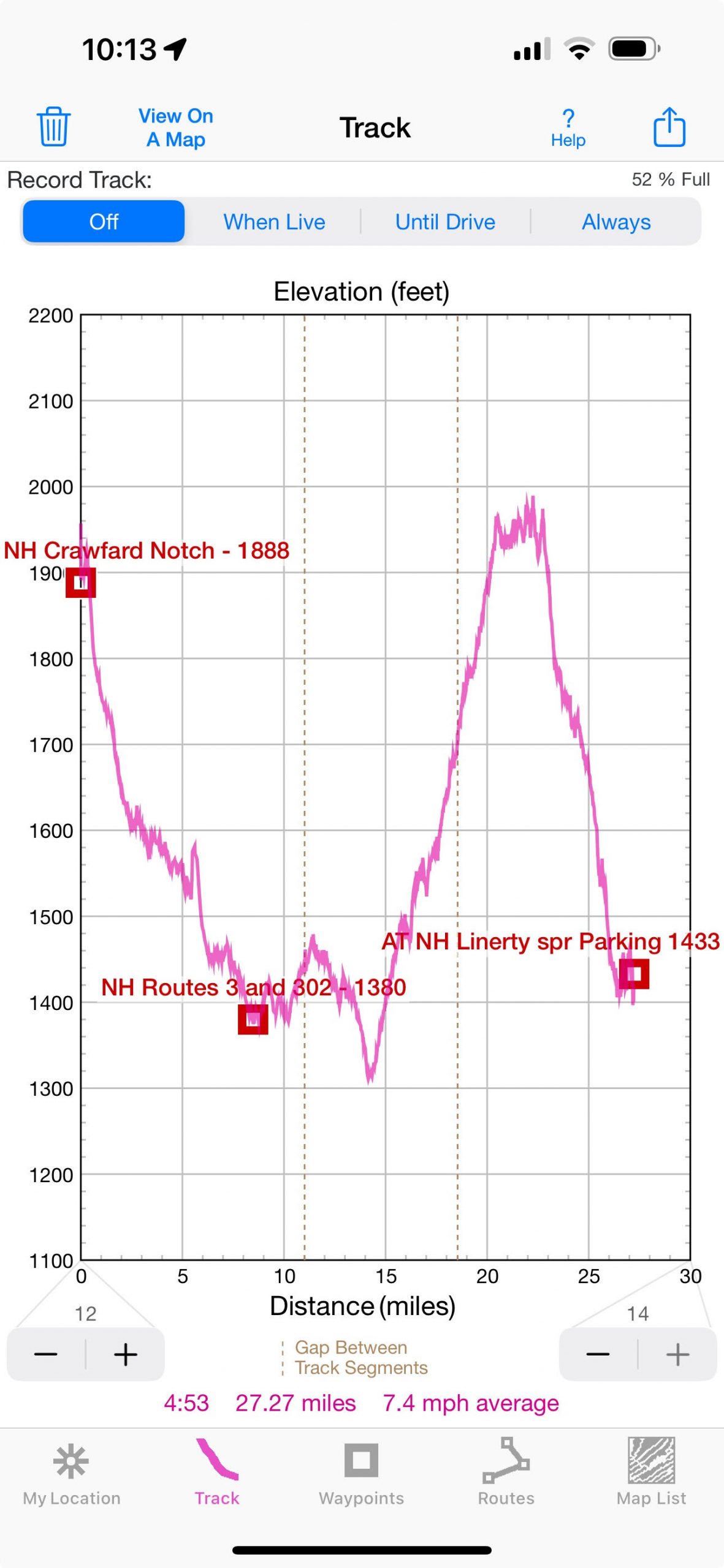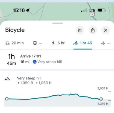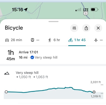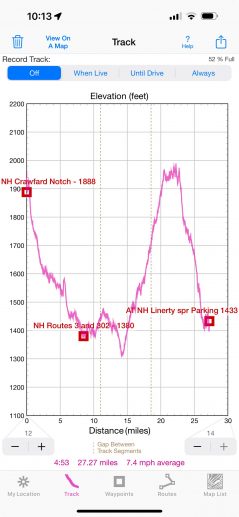 15:41 I am departing from a random stop on the side of the road (route 302) and I need to go up in the next 10 mi from 1300′ to 1700′ elevation.