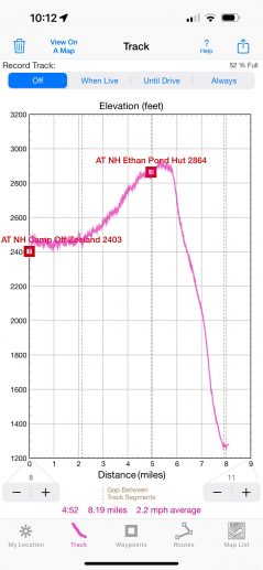 Day 04 summary: relatively flat hike to Ethan Pond and then route 302 and the final desperate bike dash to the car to finish the trip on that day